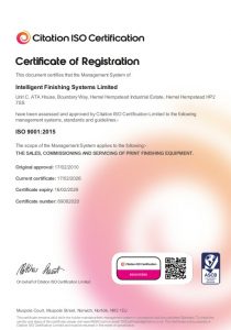 INTELLIGENT FINISHING SYSTEMS Ltd. is one of the leading suppliers of finishing equipment to the graphic arts sectors in the United Kingdom and Ireland. Key long term supplier and customer relationships span more than 35 years. The brands represented in its portfolio of products are widely recognised as being at the cutting edge of sector specific technologies. The IFS range includes market-leading automated systems in many of the key finishing disciplines – including folding, perfect binding and saddlestitching – a record that affirms IFS as the definitive point of reference for quick-response professional finishing solutions in the high street, commercial and specialist sectors, for runs-of-one to the highest volume work printed both digitally and litho.